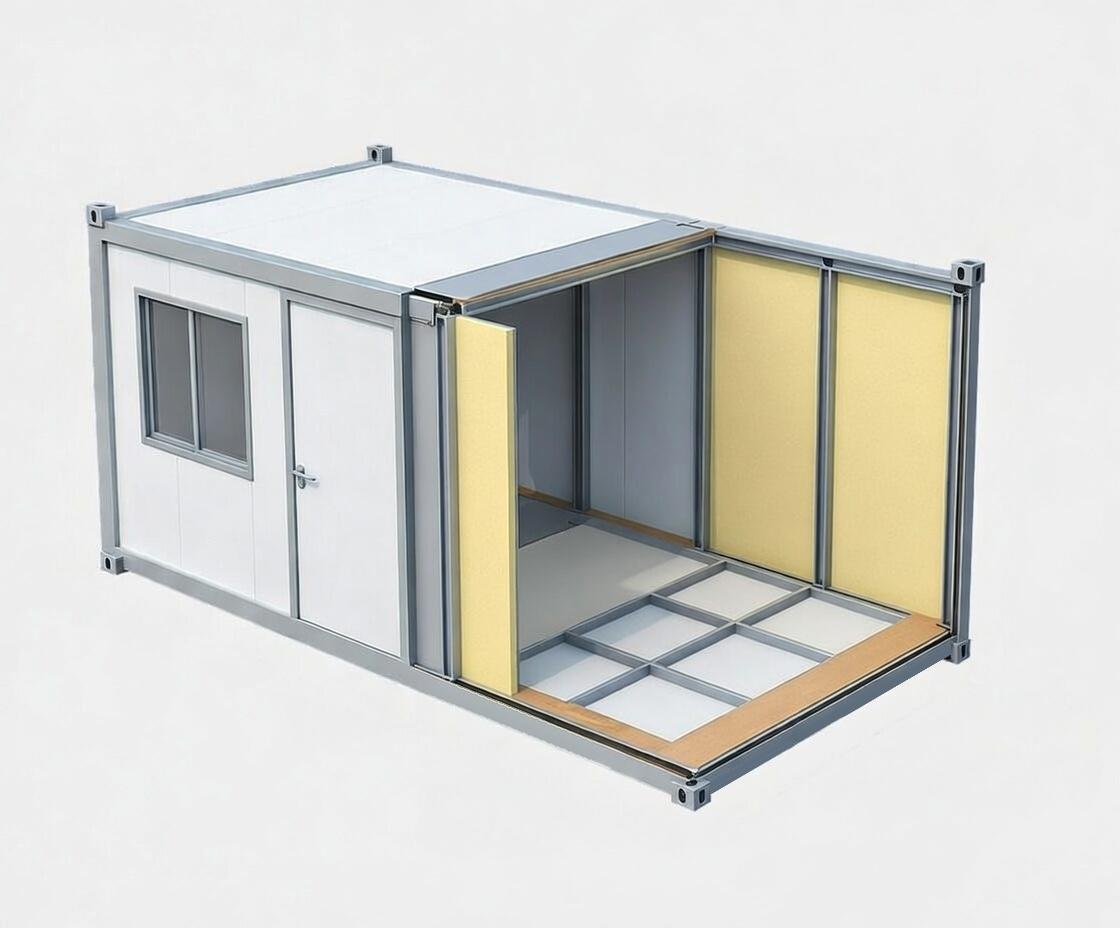 - Bardzo dobre parametry termoizolacyjne, co ogranicza straty energii i poprawia komfort cieplny wewnątrz kontenera.