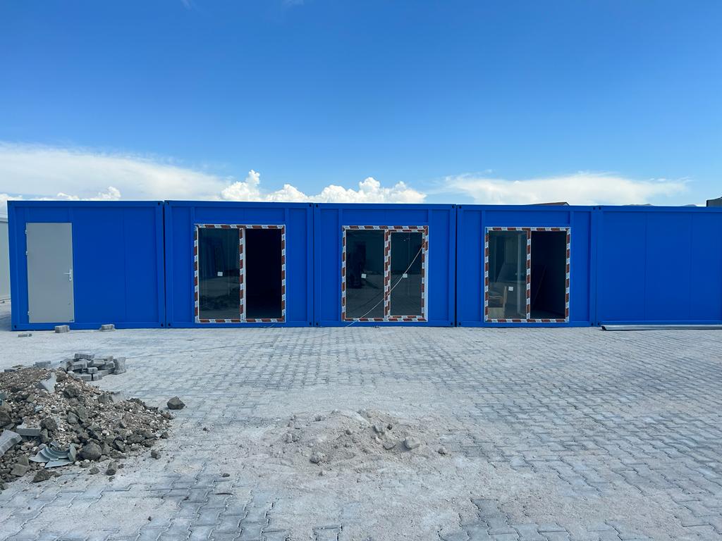 PRM212: Kontener podzielony na dwa równe główne pomieszczenia, każde z osobnymi drzwiami wejściowymi oraz oknami umieszczonymi na ścianie frontowej. Jedno z głównych pomieszczeń dodatkowo wyposażono w aneks kuchenny oraz toaletę.