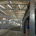 Stalowy ruszt + 100 mm wełna skalna Knauf + płyta drzazgowo‑cementowa + techniczna wykładzina PCV
